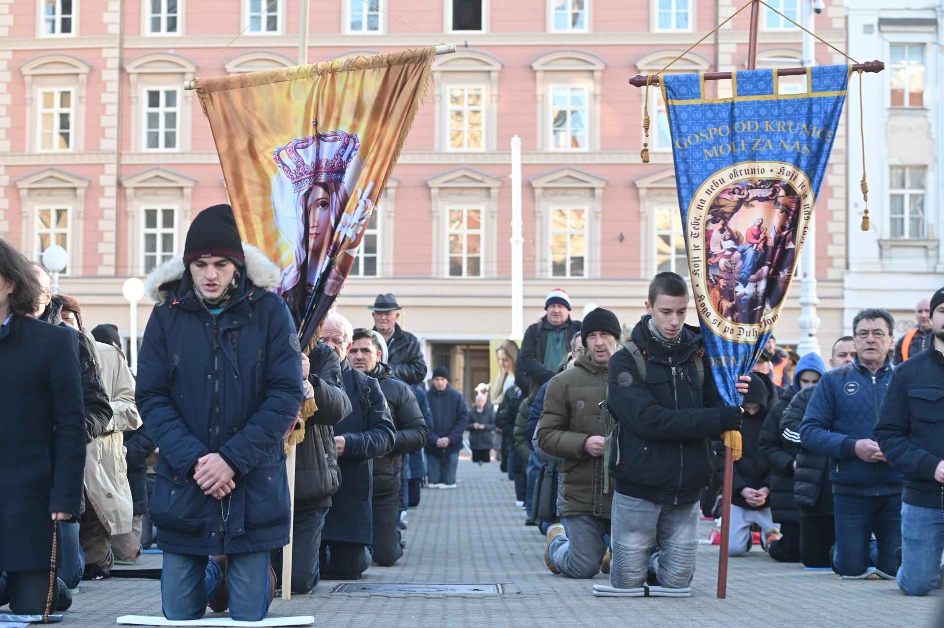 MOLITELJI su danas opet klečali i molili krunicu u centru Zagreba, na Trgu bana Jelačića. Riječ je o okupljanju ekstremnih katolika, njih nekoliko stotina, koji se okupljaju i dogovaraju kroz više udruga. No ovaj put ih je dočekao protuprosvjed u organizaciji Ženske mreže.